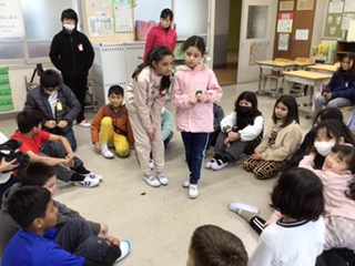 外はあいにくの曇り空ですが、ふれあい班活動をしている子どもたちは、みんな笑顔です。丸くなって「なんでもバスケット」や、ブラジルの遊びである「モルト ビボ」などを楽しんでいました。