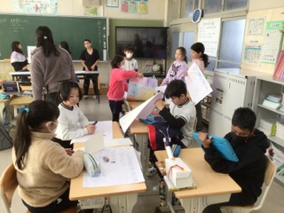 27日、4年生は総合的な学習で調べたことを発表します。少しでも分かりやすく伝えられるように、フリップを作ったり、発表の様子を動画に撮って見直したりと工夫をしています
