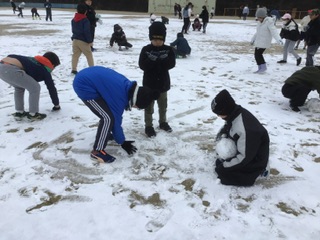 みんな、けがをしないために約束を守って遊んでいます。さすがです。雪だるまづくりに挑戦している子がたくさんいました。