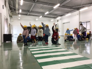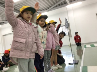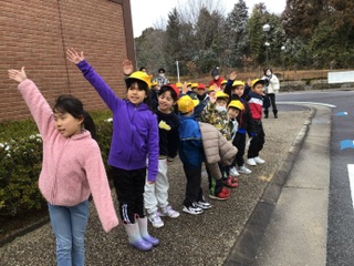 横断歩道の渡り方についても確認しました。車が来ないか確認してから渡る練習をしました。みんなしっかりと手をあげて、上手に行うことができました。