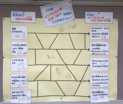 発熱や咳などの風邪症状で欠席する子が増えてきています。また、インフルエンザやコロナも市内で流行しています。学校でも、手洗いや換気等の対策を行なっていきますが、御家庭でも「早寝 早起き 朝ごはん」を合言葉に、体調を整えるよう声掛けをよろしくお願いします。