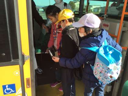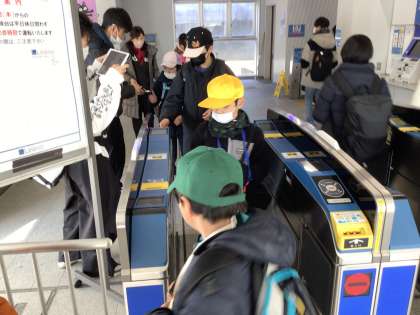 帰りも、リニモ、愛環、おいでんバスを乗り継いで帰ります。切符を自動改札機に入れることも、電車やバスの中で静かに過ごすことも、みんなとても上手にできました。充実した1日になって、みんな大満足です。