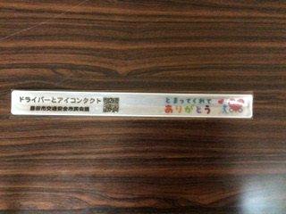 夏休みに考えた、交通安全標語の優秀作品入りの鉛筆ができました。また、標語は市のコンクールにも応募したので、参加賞としてワンタッチで腕に巻き付く反射材が届きました。今後、お子さんを通じて、もしくは個別懇談会時に配付していきます。