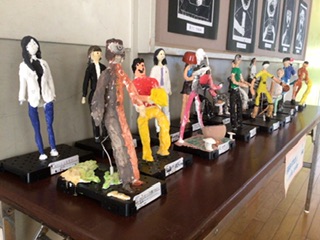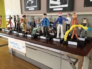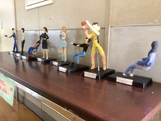 スカイライトホールに、6年生が作った立像が展示してあります。テーマは「10年後のわたし」です。医者、画家、歌手、警察官、消防士…いろいろな職業に就いている未来の自分がいます。