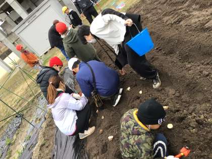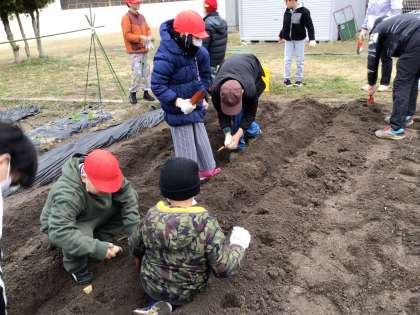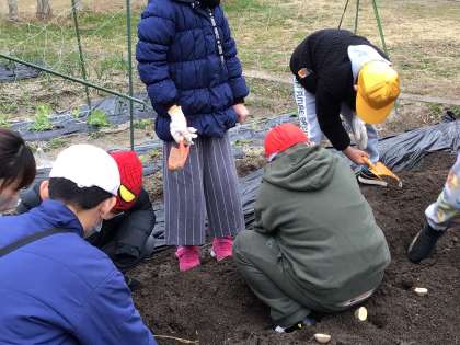 「大きくなってね」「じゃがいもがんばれ」と声をかけながら、みんなでじゃがいもを植えました。来年度のにしほみ商店をお楽しみに!