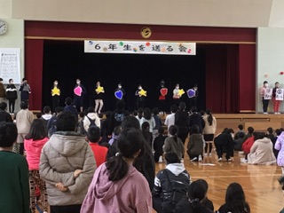 5年生が中心となって、「6年生を送る会」を行いました。前半は全体で、後半はふれあい班に分かれて楽しみました。お世話になった6年生に感謝の気持ちを伝えることができました。