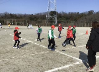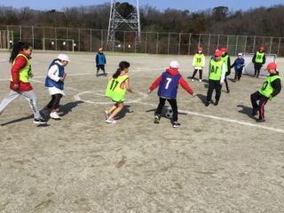 まだ風は冷たいですが、4年生は外で元気に体育の授業を行っています。ミニコートでのサッカーゲーム、ボールにみんな向かっていきます。