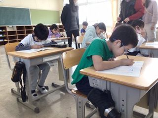教室内はとても静かです。黙々と問題に取り組んでいます。