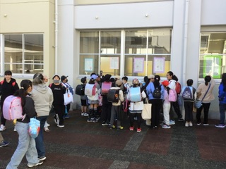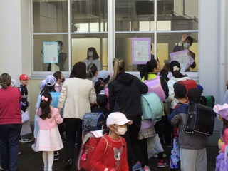 昇降口前に新学年の名簿が掲示されました。みんな自分の名前や担任の先生を確認しています。