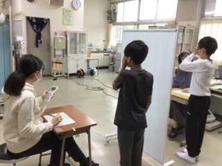 今日は4、5、6年生が行いました。視力が落ちないように、読んだり書いたりする時の姿勢には気をつけたいですね。