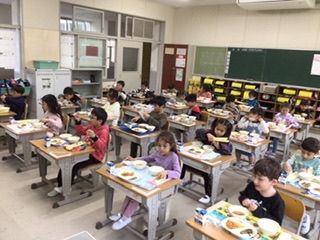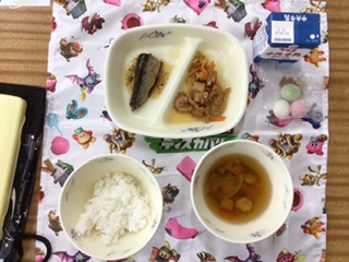 いわしのうめに ちらしずしのぐ ごはん かしわじる はなみだんご ぎゅうにゅう です。