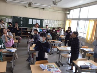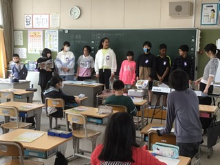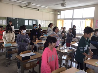 音楽の時間、まずは軽快なリズムに合わせて元気いっぱい身体を動かします。後半は「believe」という曲。どんなふうに表現したらよいかを考えて、前で発表もしました。