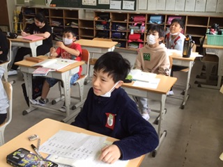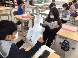文章の読み取りや音読練習などに取り組んでいます。和風月名も調べていました。