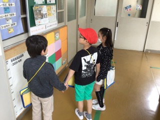 楽しく探検中です。2年生はお兄さんお姉さんとして、特別教室などについて解説していました。