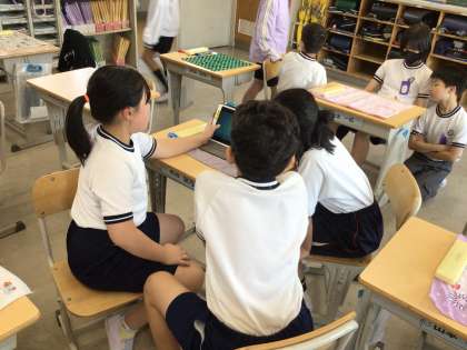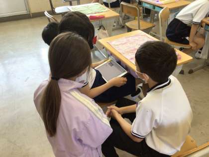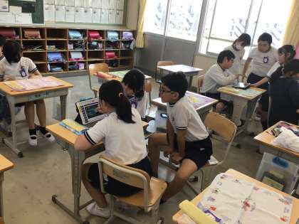 来週の「1年生を迎える会」で、5年生は西保見小学校クイズを出します。学級で話し合って「1年生が楽しめて、ためになるクイズ」を考え、パワーポイントにまとめています。みんなを楽しませるために工夫する姿は、とても頼もしいです。