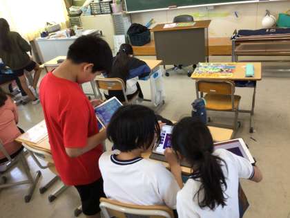それぞれの班で問題やレイアウトを考えてタブレットで作成しています。
