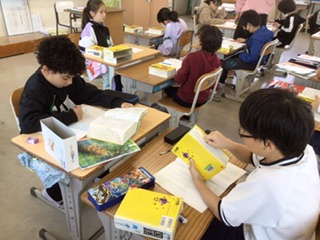 辞書を使って調べながら、ことばのきまりの学習に取り組んでいます。分からないところは、相談しながら進めています。