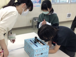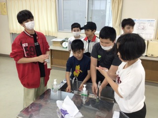 手洗いの実験を通して、衛生的な生活について考えました。いつもより丁寧に洗っているようです。また、ブラックライトを使って、洗い残しがないかも調べました。今回の学んだことは、全校に広めていきます。