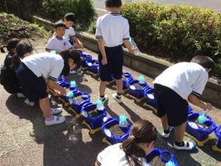 1年生 朝顔の水やり(5月15日)