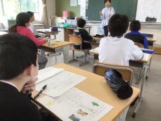 説明文の授業です。イースター島に森林がない理由を、教科書の文章から読み取っています。