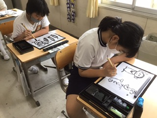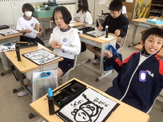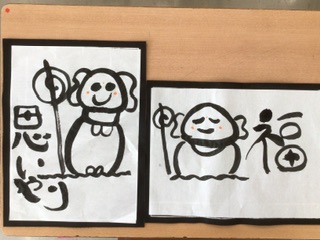 筆を使って、お地蔵さんとメッセージをかきました。素敵な作品ができています。