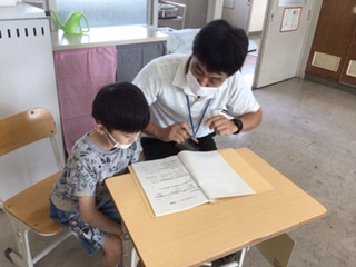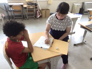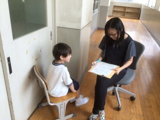 静かな場所で、事前に行った「こころのアンケート」を見ながら、担任の先生とゆっくり話します。気になっていること、悩んでいることを相談できる時間です。21日まで行います。