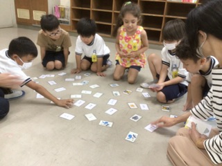 日本語教室では、天気について勉強していました。黒板で天気の種類を確かめた後、かるたを使って復習しました。