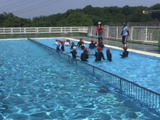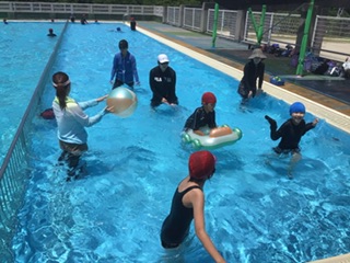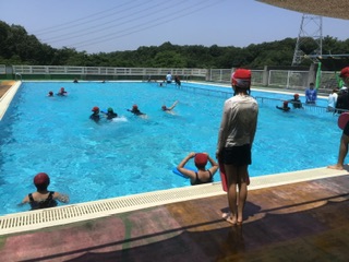 今日はとても良い天気です。たくさんの学年がプールの授業を行いました。気持ちよさそうです。