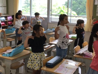 ドレミの歌の演奏が上達しました。そこで今日は「ドレミの歌体操」を覚えました。おうちでもやってみてください。