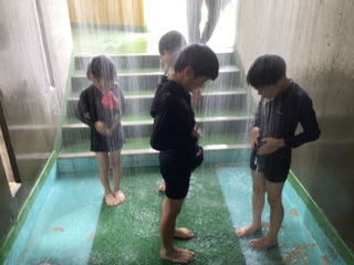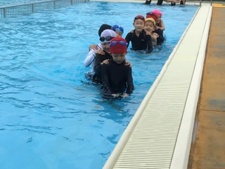 久しぶりのプールです。電車遊びをしたり、リレーをしたりして水に親しみました。