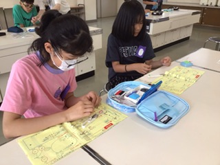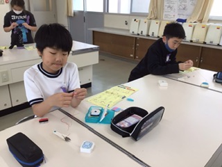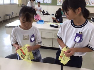 裁縫の学習です。今日は「玉結び」と「玉どめ」に挑戦です。なかなか上手くできずに苦労していましたが、少しずつコツを掴んできたようです。