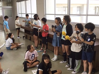 音楽の時間、マラカスやギロ、拍子木を使って「いろんな木の実」を演奏しました。楽器を演奏していない子は歌を担当。元気な歌声に、リズムよく楽器の音が重なります。