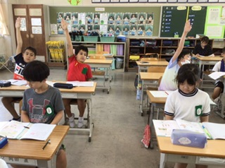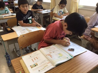 算数の学習です。一覧表にまとめられたものを、棒グラフを使って表すことに挑戦です。