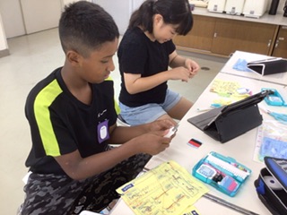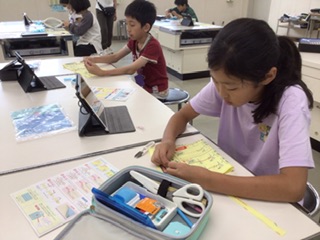 学習用タブレットの説明動画でやり方を確認しながら、黙々と針を進めています。