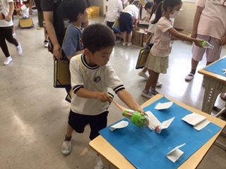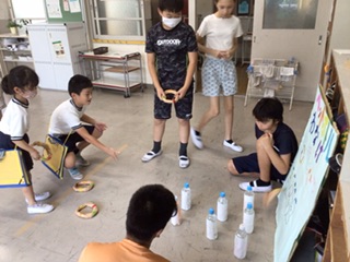 6年生が1年生を楽しませようと、1か月近くかけて準備してきました。ゲーム内容はもちろん、見た目もワクワクする、しゃてき、ボーリング、わなげ、魚釣り、100本くじなどの屋台が並びます。夢中になって遊ぶ1年生、優しくフォローする6年生。素敵なお祭りになりました。
