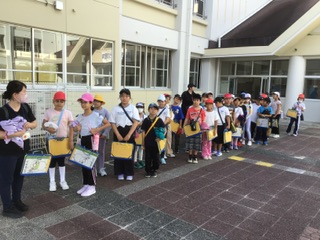 今日は楽しみにしていた校外学習の日です。みんな元気いっぱい、自然観察の森へと出発しました。いろいろなことを発見できると良いですね。
