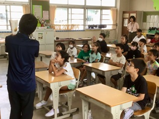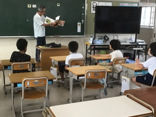 日中はまだ暑いですが、朝夕は涼しい風も吹くようになってきました。今日は読み語りの日です。どの学年もお話に聞き入っています。写真は6年生、3年生、4・5組の様子です。