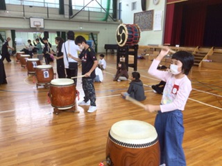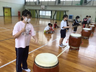 今年も早川流櫓太鼓の皆さんを講師にお招きして、和太鼓体験をしました。まずは6年生。叩き方を聞いた後、リズムを合わせて演奏していきます。ぴったりあった太鼓の音が、体育館に響いています。さすがです。