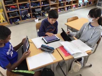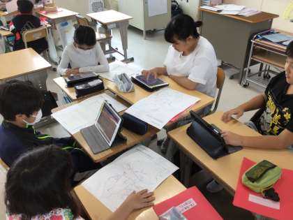 西保見小学区の危険な場所を調べました。それぞれ調べたことを話し合い、マップにまとめています。自分の住んでいる地域のことなので、みんな真剣にそして具体的に考えることができました。