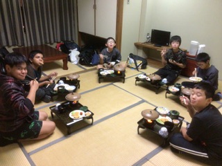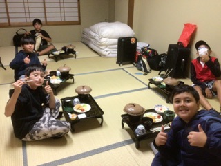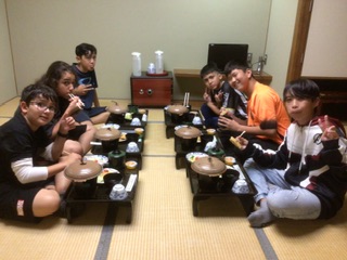 渋滞で旅館到着は少し遅れましたが、今は美味しい夕食をいただいています。みんな元気いっぱいです。