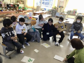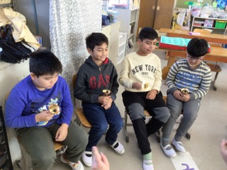 音楽の授業で、ハンドベルでクリスマスソングを奏でる練習をしています。12月の授業参観で披露します。楽しみにしていてください。