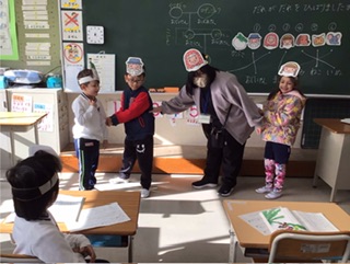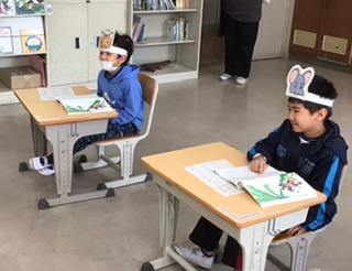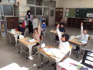 国語の授業です。誰が誰を引っ張ったのかを確かめてから、抜く場面を演じてみました。みんな、それぞれの役になり切っています。「もう一度やってみたい人」と聞くと、全員が元気よく手をあげました。