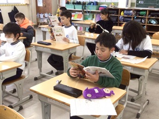 国語の授業です。「ごんぎつね」を読んで、ごんの気持ちを考えています。