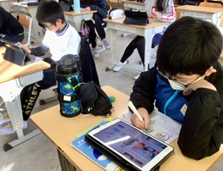 今日の5時間目は、1、2組ともに卒業文集の原稿を書いていました。レイアウトも内容も自分で考えて、ページを作っていきます。多くの人が、「自分の好きな〇〇」について、イラストや文章でまとめていました。さて、どんな文集になるのでしょうか。
