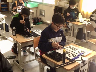 6年生 書き初め練習(2組12月16日)