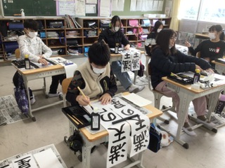 6年生は「満天の星」を書きます。みんな集中して練習に取り組んでいます。