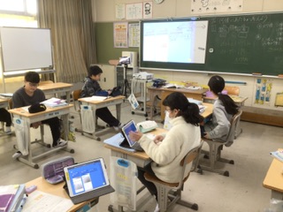 算数の時間です。問題を読んで、求める値は元の値の何倍かを考えて解いていきます。整数倍だけでなく、0.9倍などということもあるので、慎重に問題文を読んで立式しています