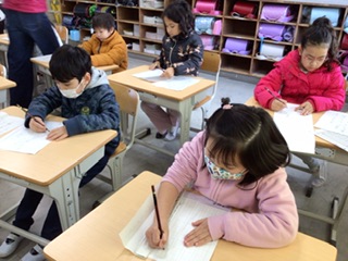 1、2年 書き初め大会(1月7日)