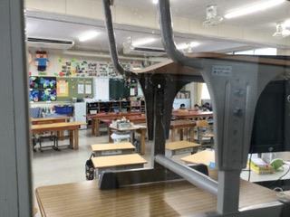 今回は校内に不審者が入ってきた時に、どうすればよいかの訓練です。どのルートを通って逃げたら安全なのか友達と話し合ったり、出入り口や教室内にバリケードを作って隠れたりと、それぞれの学級で対応を考えていました。