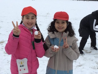 たくさんの西保見っ子たちが運動場に出て、元気いっぱい雪遊びです。